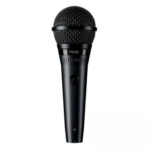 Iniciamos nossa seleção com o Microfone de Mão com Fio Dinâmico PGA58-LC da Shure, perfeito para vocalistas que querem desempenho confiável e clareza excepcional.