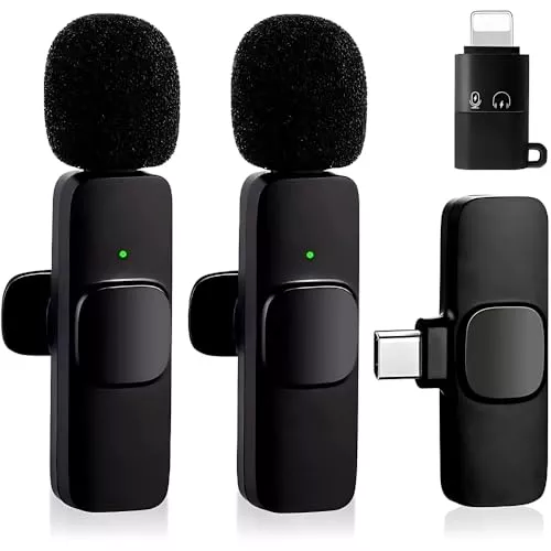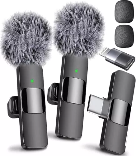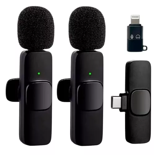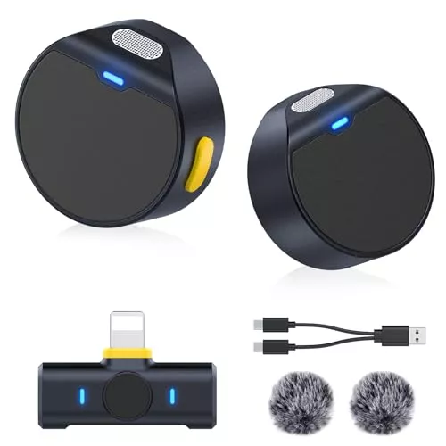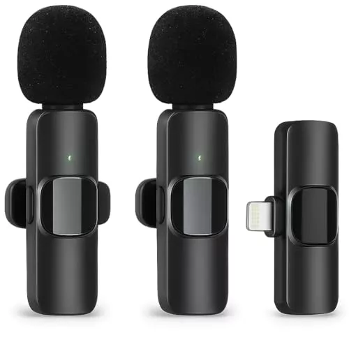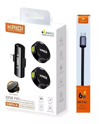 Este kit de microfone de lapela sem fio, com duas peças compatíveis com iPhone e iPad, é ideal para quem deseja áudio profissional com praticidade.