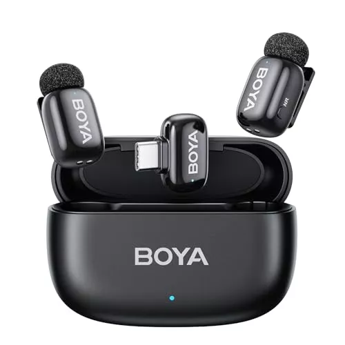 O microfone lapela Boya Mini-14 USB-C é compacto e profissional, combinando portabilidade e qualidade sonora para gravações e lives.